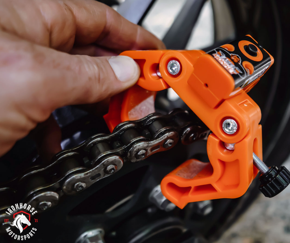 The Tru-Tension Chain Monkey is a digital chain tensioning tool that allows you to set the tension of your motorcycle chain with precision. It is easy to use and takes the guesswork out of chain maintenance. The device is equipped with a laser-guided system that helps to align the rear wheel with the chain, making it a very accurate tool.